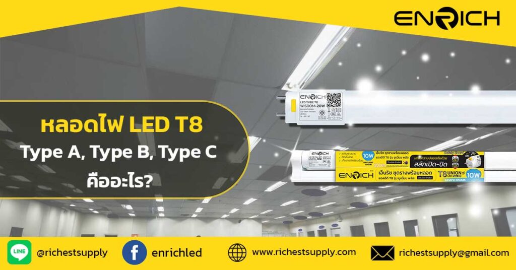 หลอดไฟ LED T8 Type A, Type B, Type C คืออะไร? หลอดไฟ LED T8 ได้รับความนิยมอย่างมากในปัจจุบัน เนื่องจากมีประสิทธิภาพสูง ประหยัดพลังงาน และมีอายุการใช้งานที่ยาวนานกว่าหลอดฟลูออเรสเซนต์แบบเดิม อย่างไรก็ตาม หลอดไฟ LED T8 มีหลายประเภท ซึ่งสามารถแบ่งออกเป็น 3 ประเภทหลัก ๆ ได้แก่ Type A, Type B และ Type C การเลือกประเภทของหลอดไฟให้เหมาะสมกับการใช้งานเป็นสิ่งสำคัญ เพราะแต่ละแบบมีข้อดี-ข้อเสีย และวิธีการติดตั้งที่แตกต่างกัน ในบทความนี้ เราจะมาเจาะลึกเกี่ยวกับหลอดไฟ LED T8 ทั้ง 3 ประเภท เพื่อช่วยให้คุณ 1. หลอดไฟ LED T8 Type A คืออะไร? หลอดไฟ LED T8 […]