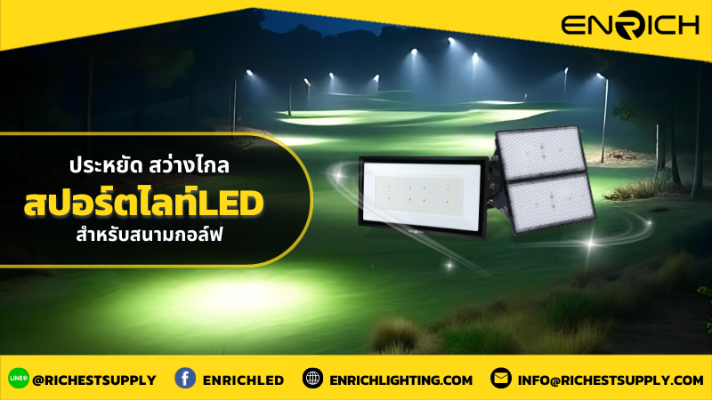 โคมสปอร์ตไลท์ LED สำหรับสนามกอล์ฟ ลงทุนแสงสว่างให้คุ้มค่า สนามกอล์ฟที่ขยายเวลาเปิดให้บริการไปถึงช่วงเย็นหรือกลางคืน ตอบโจทย์สำหรับผู้มีเวลาว่างแค่เพียงในช่วงเย็นหรือค่ำ ไม่ต้องการตากแดดร้อนๆ การติดตั้งโคมที่ให้แสงสว่างจึงกลายเป็นสิ่งที่ต้องนึกถึง สปอร์ตไลท์ LED อีกหนึ่งโคมที่หลายสนามหันมาใช้ เพราะไม่ใช่แค่ให้แสงสว่างที่ดี แต่ยังช่วยประหยัดพลังงานและลดค่าไฟในระยะยาวได้จริง ทำไมสนามกอล์ฟต้องเลือกสปอร์ตไลท์ LED? จุดเด่นของโคมไฟสปอร์ตไลท์ LED สำหรับสนามกอล์ฟคือเรื่องของความประหยัดและความสว่างที่ได้คุณภาพ ไฟสปอร์ตไลท์ LED ให้ความสว่างที่เสถียร แสงไม่กระพริบ ไม่มีสารปรอท แถมLED ยังเปิดติดได้ทันที ไม่ต้องรอเวลา และที่สำคัญคือลดค่าไฟฟ้าได้มากกว่า 50% เมื่อเทียบกับโคมแบบเก่าอย่าง Metal Halide หรือ Sodium แสงสว่างครอบคลุมและคมชัด: ให้แสงสม่ำเสมอ ครอบคลุมพื้นที่กว้างของสนามกอล์ฟ ช่วยให้ผู้เล่นมองเห็นลูกกอล์ฟและสนามชัดเจน โดยไม่เกิดเงามืดหรือแสงจ้าที่รบกวนสายตา ประหยัดพลังงานและทนทาน: สปอร์ตไลท์ LED ใช้พลังงานน้อยกว่าหลอดไฟแบบเดิมถึง 50-70% และมีอายุการใช้งานยาวนาน 50,000 ชั่วโมง หรือมากกว่านั้น ช่วยลดค่าไฟและค่าบำรุงรักษา ทนต่อสภาพอากาศ: ออกแบบมาให้มีมาตรฐานกันน้ำและฝุ่น เช่น IP65 หรือ IP66 ทำให้สปอร์ตไลท์ […]