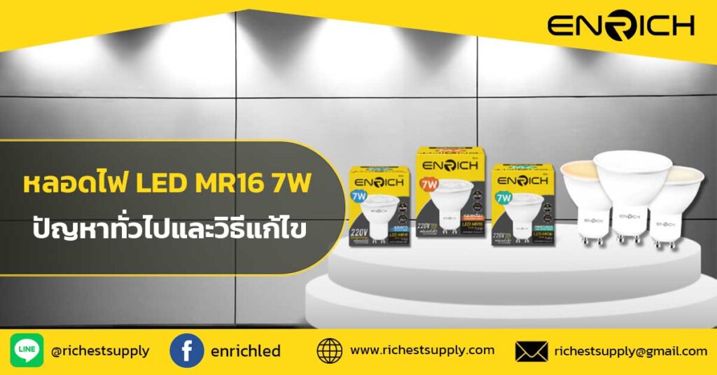 หลอดไฟ LED MR16 7W ปัญหาทั่วไปและวิธีแก้ไข หลอดไฟ LED MR16 7W เป็นหนึ่งในตัวเลือกที่ได้รับความนิยมอย่างมากสำหรับการใช้งานในบ้าน ร้านค้า และสถานที่เชิงพาณิชย์ เนื่องจากให้แสงที่สว่าง คมชัด ประหยัดพลังงาน และมีอายุการใช้งานยาวนาน อย่างไรก็ตาม หลายคนอาจพบปัญหาต่าง ๆ ระหว่างการใช้งาน เช่น ไฟกระพริบ ไฟไม่ติด หรือแสงหรี่ผิดปกติ บทความนี้จะอธิบายปัญหาทั่วไปที่เกิดขึ้นกับหลอดไฟ LED MR16 7W พร้อมวิธีแก้ไข เพื่อให้สามารถใช้งานหลอดไฟได้อย่างเต็มประสิทธิภาพ 1. ปัญหาหลอดไฟ LED MR16 7W ไม่ติด สาเหตุที่เป็นไปได้ หลอดไฟเสียหรือหมดอายุการใช้งาน หม้อแปลง (Transformer) ไม่รองรับ LED ขั้วหลอดไฟหลวม หรือสายไฟขาด แรงดันไฟฟ้าไม่เหมาะสม วิธีแก้ไข เปลี่ยนหลอดไฟ – ลองใช้หลอดไฟใหม่เพื่อทดสอบว่าสาเหตุเกิดจากตัวหลอดหรือไม่ ตรวจสอบหม้อแปลง – หากยังใช้หม้อแปลงเดิมจากหลอดฮาโลเจน อาจไม่รองรับ LED ควรเปลี่ยนเป็นหม้อแปลงที่ออกแบบมาสำหรับ […]