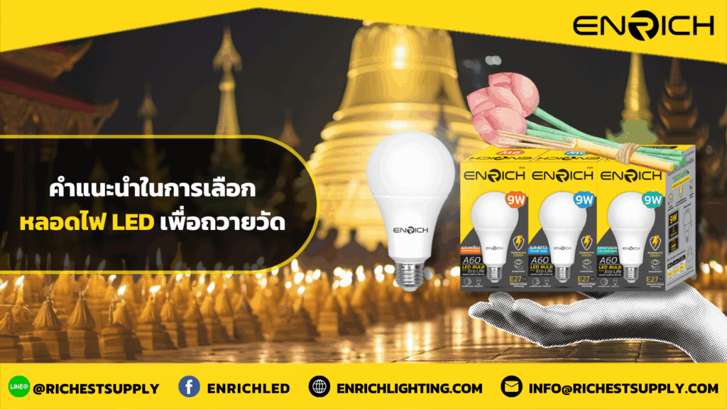 คำแนะนำในการเลือกหลอดไฟ LED เพื่อถวายวัด ในยุคปัจจุบันที่เทคโนโลยีส่องสว่างพัฒนาอย่างรวดเร็ว หลอดไฟ LED ได้เข้ามาแทนที่หลอดแบบเดิมในหลายพื้นที่รวมถึง วัดวาอาราม ที่ต้องการแสงสว่างสำหรับประกอบกิจกรรมทางศาสนาการถวายหลอดไฟ LED จึงกลายเป็นอีกหนึ่งรูปแบบของการทำบุญที่ไม่เพียงแค่สร้างบุญ แต่ยังส่งผลดีต่อวัดในด้านการประหยัดพลังงานและลดค่าไฟฟ้าอย่างยั่งยืน อย่างไรก็ตาม การเลือกหลอดไฟ LED เพื่อถวายวัด ควรคำนึงถึงหลายปัจจัย เพื่อให้วัดสามารถนำไปใช้ได้จริงและปลอดภัย บทความนี้จะแนะนำแนวทางการเลือกอย่างละเอียด ทำไมต้องเลือกหลอดไฟ LED สำหรับถวายวัดโดยเฉพาะ วัดเปิดไฟนานกว่าบ้านทั่วไป จึงควรเลือกหลอดที่ทนทานและประหยัดไฟ บางวัดไม่มีช่างประจำ การเลือกหลอดที่ใช้งานง่ายและอายุยาวจึงสำคัญ พื้นที่ของวัดมีหลายแบบ ทั้งภายในโบสถ์ ศาลา ลานวัด ห้องน้ำ ฯลฯ การเลือกแสงสีและความสว่างเหมาะสม มีผลต่อบรรยากาศและความศักดิ์สิทธิ์ของสถานที่ คำแนะนำในการเลือกหลอดไฟ LED เพื่อถวายวัด 1.เลือกหลอดที่ “ได้มาตรฐาน มอก.” เพื่อความปลอดภัย ควรตรวจสอบว่าหลอดไฟ LED มี มาตรฐาน มอก. บนบรรจุภัณฑ์ ไม่มีปัญหาเรื่องไฟกระพริบหรือเสียงดัง ใช้วัสดุแข็งแรง ไม่แตกหักง่าย 2. เลือก “แสงวอร์มไวท์” (Warm White) […]