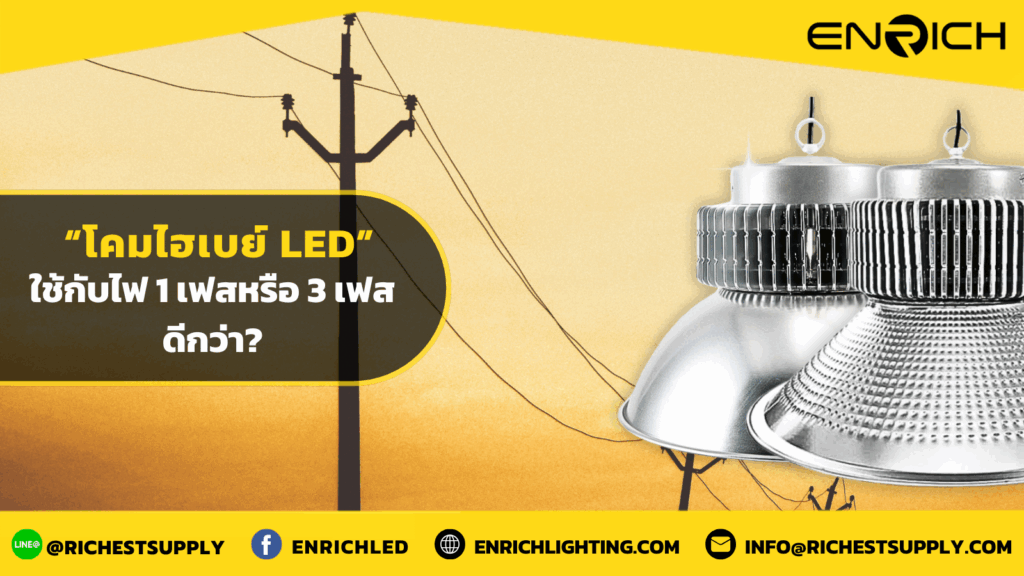 โคมไฮเบย์ LED ใช้กับไฟ 1 เฟสหรือ 3 เฟสดีกว่า? การเลือกใช้โคมไฮเบย์ LED ไม่ได้ขึ้นอยู่แค่เพียงวัตต์หรือความสว่างเท่านั้น แต่ “ระบบไฟฟ้า” ที่ใช้ก็มีผลต่อประสิทธิภาพ ความปลอดภัย และต้นทุนในระยะยาว โดยเฉพาะคำถามยอดนิยมอย่าง โคมไฮเบย์ LED ควรใช้กับระบบไฟ 1 เฟสหรือ 3 เฟสดีกว่า? บทความนี้จะช่วยให้เข้าใจถึงข้อดีข้อเสียของแต่ละระบบ และแนะนำวิธีเลือกโคมไฮเบย์ LED ให้เข้ากับระบบไฟฟ้า ไฟฟ้า 1 เฟส และ 3 เฟส คืออะไร? ไฟฟ้า 1 เฟส (Single-Phase Electricity): เหมาะสำหรับบ้านและธุรกิจขนาดเล็ก ระบบไฟฟ้า 1 เฟส คือระบบไฟฟ้ามาตรฐานที่พบได้ทั่วไปในที่อยู่อาศัย อาคารสำนักงานขนาดเล็กไปจนถึงขนาดกลาง หรือธุรกิจขนาดเล็ก โดยมีองค์ประกอบหลักคือ สายไฟฟ้า 2 เส้น ได้แก่ สาย Line (สายที่มีกระแสไฟฟ้า) และสาย […]