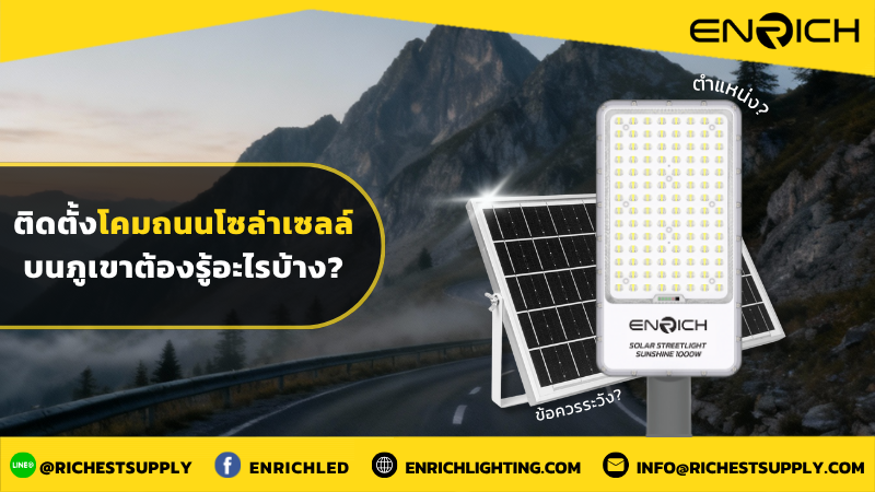 ติดตั้งโคมถนนโซล่าเซลล์บนภูเขาต้องรู้อะไรบ้าง? การติดตั้งโคมถนนโซล่าเซลล์กลายเป็นทางเลือกยอดนิยมในยุคที่พลังงานสะอาดและความคุ้มค่าระยะยาวสำคัญกว่าเดิม โดยเฉพาะในพื้นที่ห่างไกลอย่าง “บนภูเขา” ซึ่งไฟฟ้าเข้าถึงได้ยาก การใช้ โคมถนนโซล่าเซลล์บนภูเขา ไม่เพียงช่วยประหยัดพลังงาน แต่ยังเพิ่มความปลอดภัยในพื้นที่ทางลาดชันและถนนคดเคี้ยวได้เป็นอย่างดี ดังนั้นการเลือกแบบโคมและติดตั้งให้เหมาะสมจึงเป็นสิ่งสำคัญ เพื่อให้โคมไฟสามารถทำงานได้อย่างมีประสิทธิภาพและทนต่อสภาพอากาศได้ดี 1. เลือกโคมถนนโซล่าเซลล์ที่เหมาะกับสภาพภูเขา พื้นที่บนภูเขามักมีลมแรง ฝนตกหนัก หมอกหนา และบางแห่งมีอากาศหนาวเย็น ควรเลือกโคมถนนโซล่าเซลล์ที่มีคุณสมบัติ กันน้ำมาตรฐาน IP65 ขึ้นไป ป้องกันฝุ่นและฝนได้ดี ตัวโคมทำจากอะลูมิเนียมหล่อแข็งแรง ทนแรงลมและสภาพอากาศ แบตเตอรี่ลิเธียมคุณภาพสูง (LiFePO₄) ทนต่ออุณหภูมิต่ำและมีอายุการใช้งานนาน แผงโซล่าเซลล์แบบ Mono-crystalline ให้ประสิทธิภาพสูงแม้ในวันที่มีแสงแดดน้อย 2. ตำแหน่งการติดตั้งโคมถนนโซล่าเซลล์บนภูเขา ตำแหน่งติดตั้งส่งผลโดยตรงต่อประสิทธิภาพในการรับแสงอาทิตย์และการกระจายแสงของไฟถนนโซล่าเซลล์ หันแผงโซลาร์เซลล์ไปทางทิศใต้เพื่อให้รับแสงแดดได้ตลอดวัน (ในประเทศไทย) หลีกเลี่ยงบริเวณที่มีเงาบังจากต้นไม้หรือก้อนหิน ใช้เสาไฟที่แข็งแรงเพราะลมบนภูเขาแรงกว่าพื้นที่ราบ ควรใช้ฐานคอนกรีตเสริมเหล็กและยึดด้วยน็อตกันสั่น เคล็ดลับ: ควรติดตั้งโคมไฟแต่ละต้นห่างกันประมาณ 20–25 เมตร เพื่อให้แสงกระจายสม่ำเสมอตามแนวถนน 3. ระบบแบตเตอรี่และการดูแลรักษา เนื่องจากการเข้าถึงพื้นที่ภูเขามักทำได้ยาก จึงควรเน้นที่มี อายุการใช้งานยาว และ ดูแลรักษาง่าย ตรวจสอบแรงดันแบตเตอรี่ทุก 6 เดือน ทำความสะอาดแผงโซลาร์เซลล์ทุก 2–3 […]